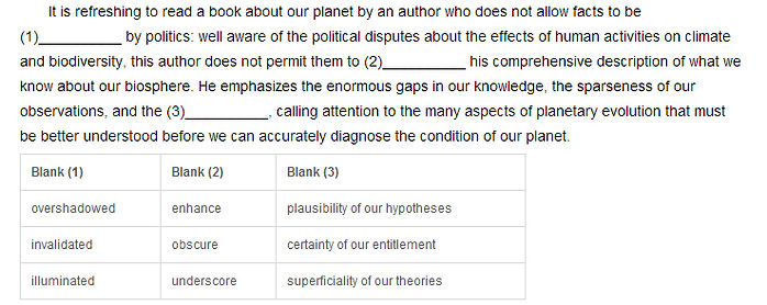 句子等价题:题干是一句话,要求考生在6个选项中选择2个分别填入题干,使两句话句意相同。